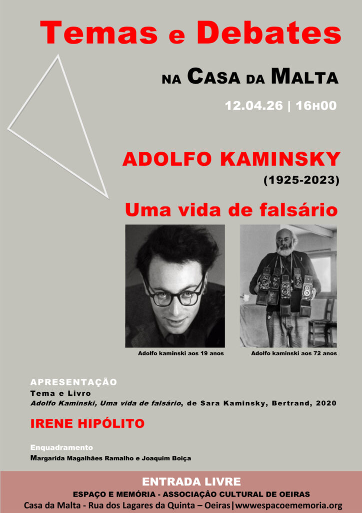 No próximo dia 12 de Abril, pelas 16 horas, na Casa da Malta, em mais uma sessão dos Temas e Debates na Casa da Malta, teremos connosco Irene Hipólito dos Santos que nos falará sobre Adolfo Kaminsky.
