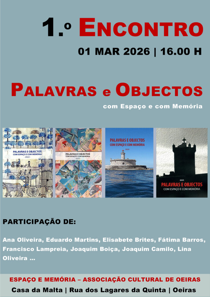 Como complemento do nosso projecto anual de «Palavras com Espaço e com Memória» gostaríamos de contar com a vossa presença, na Casa da Malta, no próximo domingo, dia 01 de Março, às 16 horas, onde realizaremos o 1º Encontro subordinado ao mesmo tema e que contará com as presenças dos seguintes autores;