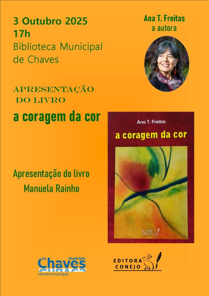 2025-10-03 - Na Biblioteca Municipal de Chaves, às 17 horas, será apresentado o livro «A Coragem da Cor», da autoria de Ana T. Freitas. A apresentação estará a cargo de Manuela Rainho.
